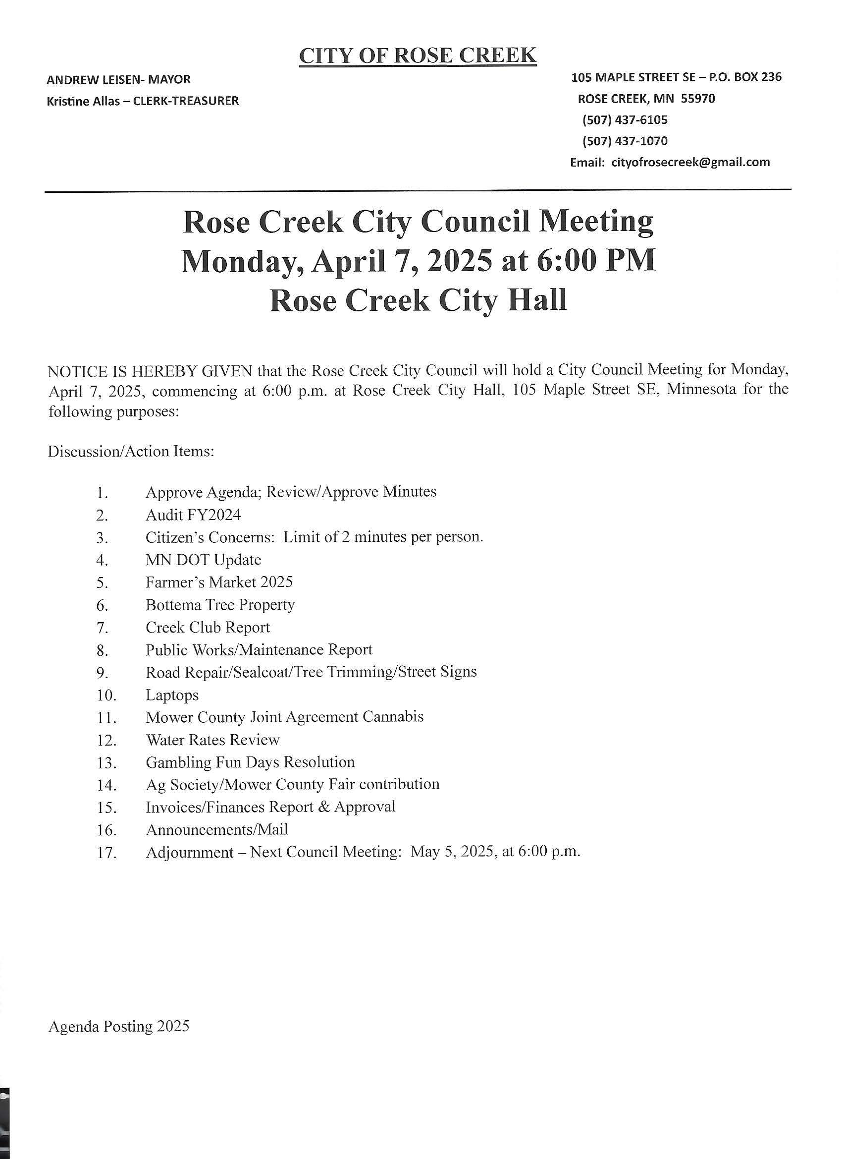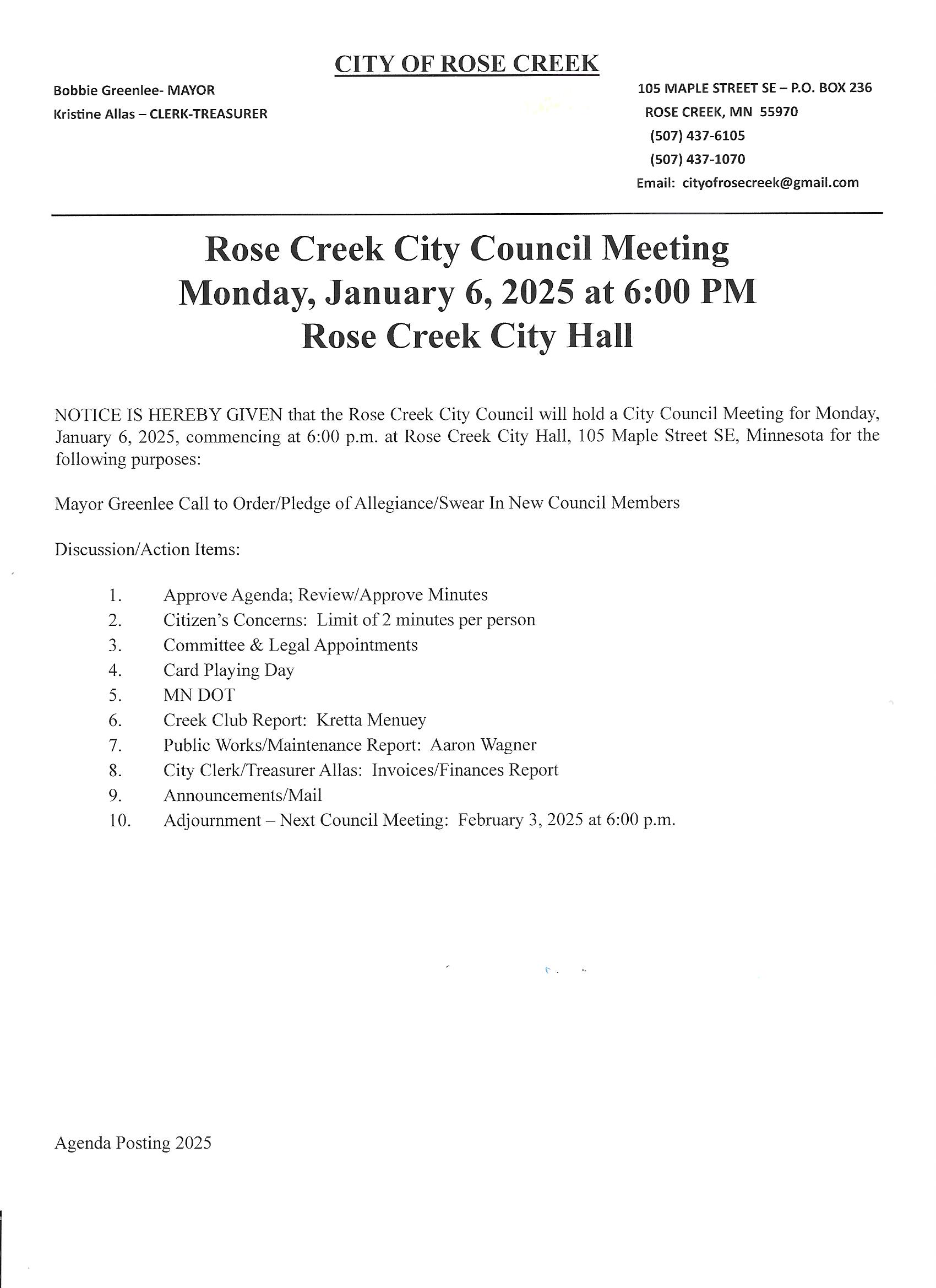MERRY CHRISTMAS from the City of Rose Creek - Christmas Light Contest 12/21 !!!